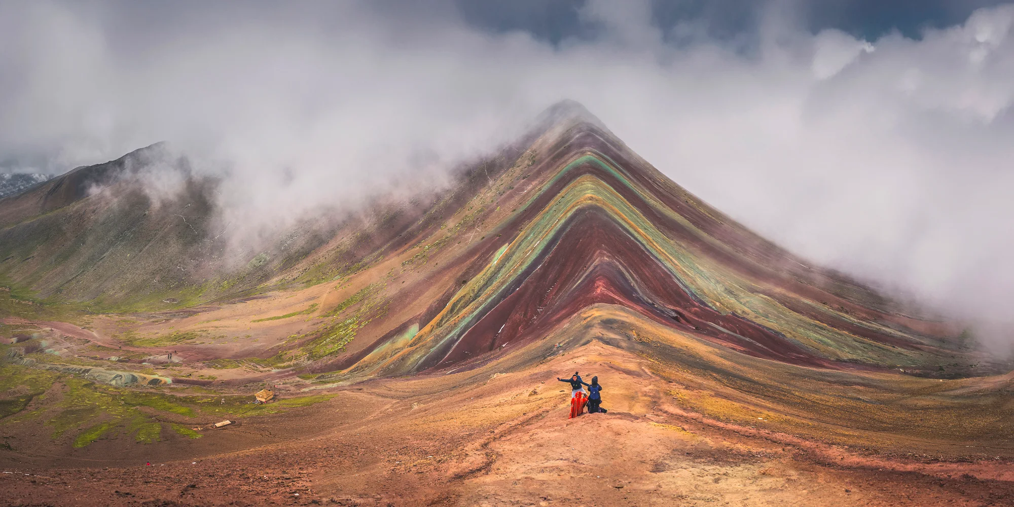 Why is Rainbow Mountain Peru colorful? It’s 100% natural—no filters needed for unedited Rainbow Mountain Peru. The vibrant stripes come from mineral deposits layered over millions of years: red from iron oxide, green from copper, yellow from sulfur, purple from manganese, and more. A decade ago, Vinicunca was still covered in snow, but climate change revealed these colors to the world. Today, it’s the most famous Rainbow Mountain in Peru, although Palccoyo Rainbow Mountain is a gentler and less crowded alternative.