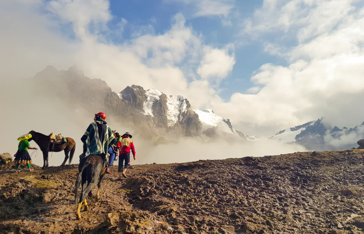 This name perfectly describes the natural geography of the area, as the mountain is located in a zone where the trail narrows between Andean elevations, serving since ancient times as a natural passage for local communities. The route to Rainbow Mountain Cusco passes through important districts such as Checacupe (Canchis province) and Cusipata (Quispicanchi province). From there, the journey continues to the hiking starting point known as Phulawasipata, where the final section of the Rainbow Mountain hike begins, lasting approximately 3 to 4 hours, depending on the visitor’s pace.