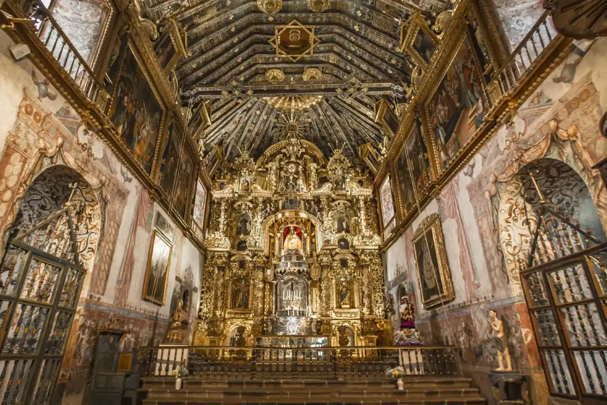 The church of Andahuaylillas is famous for its stunning baroque decoration, colorful murals, golden altarpieces, and colonial paintings. Often referred to as the Sistine Chapel of the Americas, it is one of the most important colonial temples in the southern Andes and a cultural highlight of the route.