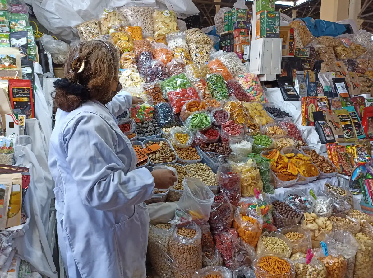 Inside, visitors discover Andean fruits, medicinal herbs, handcrafted cheeses, fresh juices, and traditional Peruvian dishes prepared on the spot. It is the perfect place to explore local flavors during your Peru food tour.