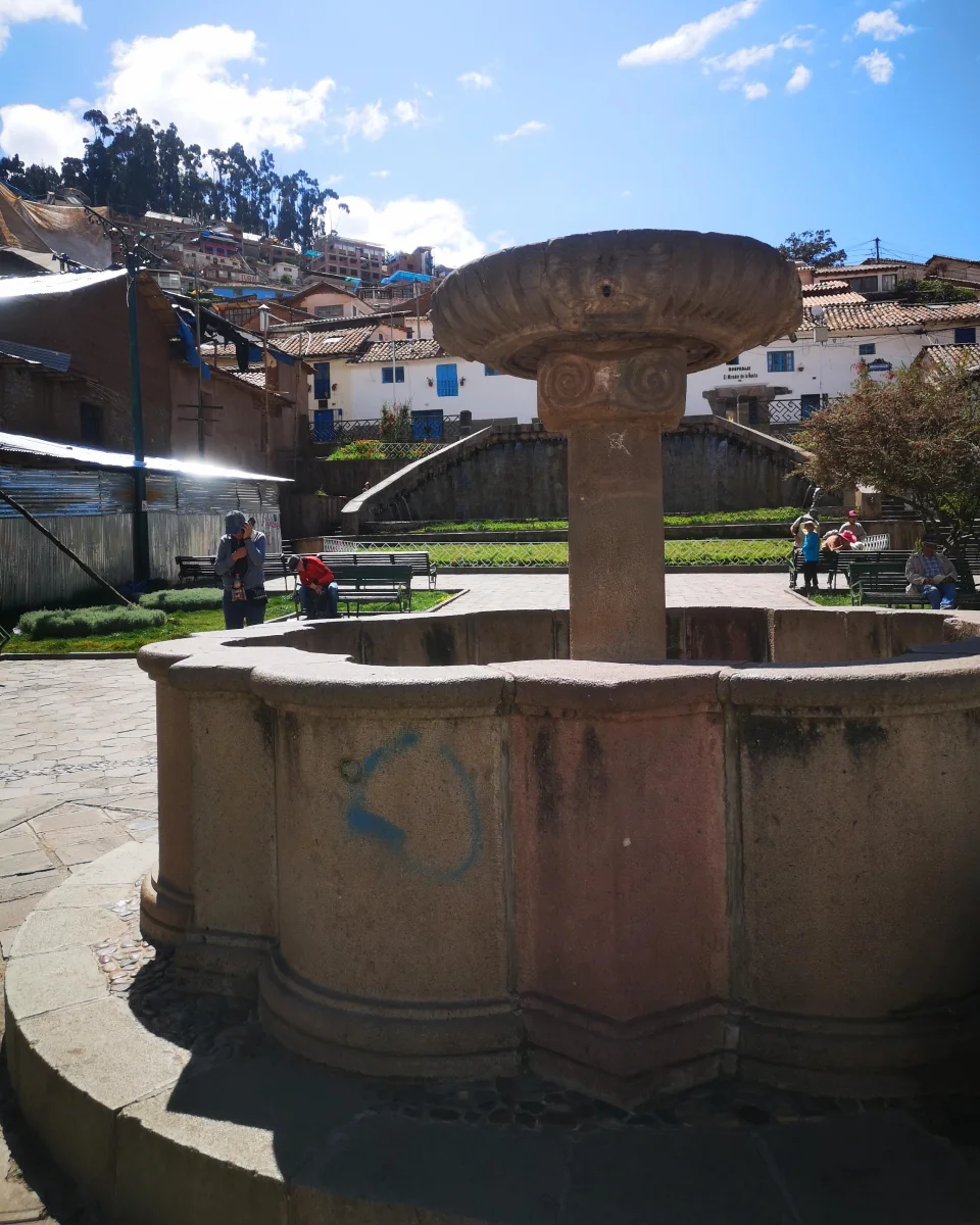 Su fuente central, que murmura de manera constante, crea un ambiente ideal para relajarse tras la subida. Alrededor encontrarás pequeñas cafeterías, tiendas de arte, talleres familiares y miradas amables que te invitan a conversar. Es también un excelente punto de encuentro para iniciar recorridos guiados o para detenerse a ver cómo los artesanos transforman madera, plata y arcilla en verdaderas obras maestras.
